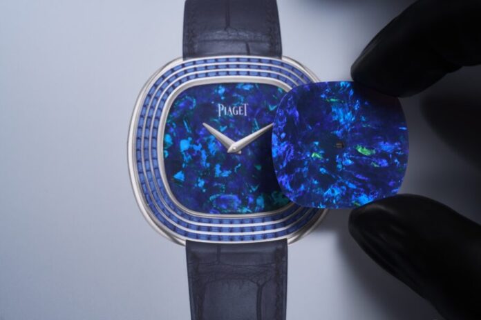 หน้าปัดที่รังสรรค์ด้วยโอปอลซึ่งมีความแวววาว เต็มไปด้วยประกายสีน้ำเงินและสีเขียว เป็นความงดงามอันน่ามหัศจรรย์ในตัวเอง อีกทั้งยังเป็นความพิเศษที่ Piaget สามารถเฟ้นหาโอปอลที่มีขนาดใหญ่พอกับ