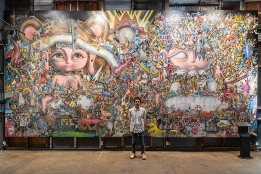 “ผมไม่ได้จัดแสดง Solo Exhibition ที่ประเทศไทยมานานหลายปีแล้วครับ เลยอยากนำผลงาน painting (จิตรกรรม) ระดับมาสเตอร์พีชทั้งงานใหม่ประมาณ 7-8 ชิ้น และผลงานจากนักสะสมที่หลายคนไม่เคยเห็นที่ไหนมาก่อนมาจัดแสดง โดยมีผลงานขนาดใหญ่สุดถึง 8 เมตร ควบคู่กับการนำ sculpture (ประติมากรรม) ที่ผมออกแบบใหม่ทั้งหมดประมาณ 20 ชิ้น เพื่อเสริมการเล่าเรื่องผ่านงาน painting ให้โดดเด่นมากขึ้น รวมถึงมีของที่ระลึกให้ผู้ชมซื้อติดมือกลับบ้านด้วยครับ