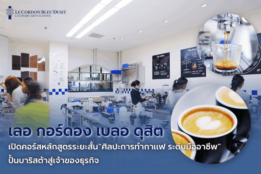 โรงเรียนสอนการประกอบอาหาร เลอ กอร์ดอง เบลอ ดุสิต (Le Cordon Bleu Dusit Culinary Arts School) จึงขอแนะนำหลักสูตรระยะสั้นสำหรับเมนูกาแฟ “ศิลปะการทำกาแฟ ระดับมืออาชีพ” ที่ได้ออกแบบมาเพื่อมอบองค์ความรู้และทักษะสำคัญสำหรับการเป็นบาริสต้ามืออาชีพอย่างรอบด้าน เหมาะอย่างยิ่งสำหรับผู้ที่ต้องการยกระดับฝีมือและนำไปต่อยอดธุรกิจร้านอาหารหรือคาเฟ่ที่มีเมนูกาแฟเป็นจุดขาย