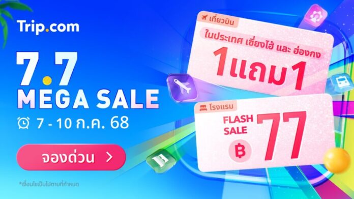 Trip.com ผู้ให้บริการด้านการท่องเที่ยวชั้นนำจัดแคมเปญ 7.7 Mega Sale ที่รวมดีลสุดคุ้มสำหรับการท่องเที่ยวสำหรับการจองโรงแรม เที่ยวบิน และสถานที่ท่องเที่ยวให้กับนักเดินทาง โปรโมชันนี้จะจัดขึ้นตั้งแต่วันที่ 7 – 10 กรกฎาคม 2568 ไฮไลท์เด็ดคือโรงแรมราคาเพียง 77 บาท* ตั๋วเครื่องบินซื้อ 1 แถม 1* รวมถึงตั๋วเข้าสถานที่ท่องเที่ยวชั้นนำพร้อมดีลเช่ารถราคาพิเศษทั่วโลก