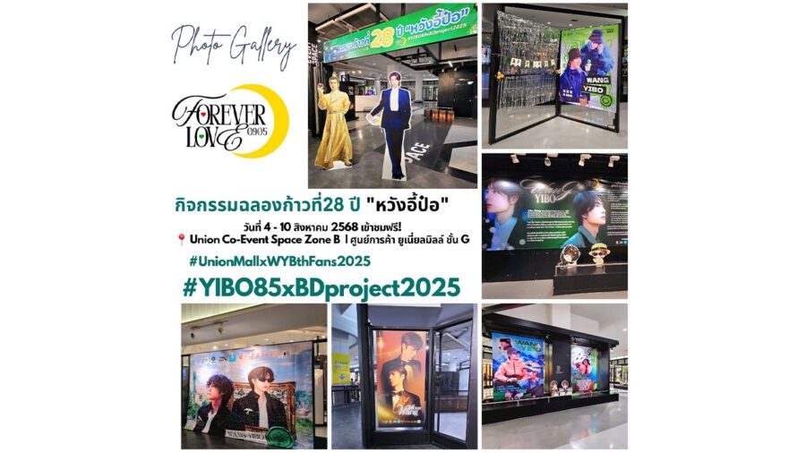พร้อมเปิดให้เข้าชมแล้วสำหรับงาน “WYB Infinite Love 28ᵀᴴ Birthday Project 2025” ซึ่งจัดโดย Forever Love 0905 by Open Up Communication ร่วมกับ UNION Mall, Anta, BOTTLEDJOY และ TAILG ในกิจกรรมพิเศษชักชวนแฟนคลับซูเปอร์สตาร์หนุ่ม หวังอี้ป๋อ มาเฉลิมฉลองกันอย่างยิ่งใหญ่ ด้วยการเปิดให้เข้าชมโซน Photo Gallery ที่ศูนย์การค้า Union Mall Zone B ชั้น G ตั้งแต่วันนี้ – 10 สิงหาคม และยังได้ร่วมทำบุญกับมูลนิธิกระจกเงา และรับกิ๊ฟอะเวย์พิเศษ รวมทั้งยังมีบูธกิจกรรมจากแบรนด์ที่หวังอี้ป๋อเป็นโกลบอลแบรนด์แอมบาสเดอร์ร่วมแจกรางวัลอีกมากมายอาทิ Anta , BOTTLEDJOY และ TAILG