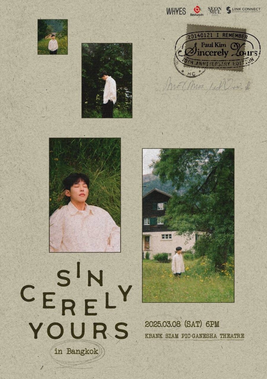 Paul Kim บินลัดฟ้ามาหาแฟนๆ ชาวไทยอีกครั้ง เตรียมปลดล็อคหูเคลือบทองกันได้ที่งาน “2025 Paul Kim Concert <Sincerely yours> in Bangkok” ในวันเสาร์ที่ 8 มีนาคม 2568 ณ โรงละครสยามแบงก์พิฆเนศ
