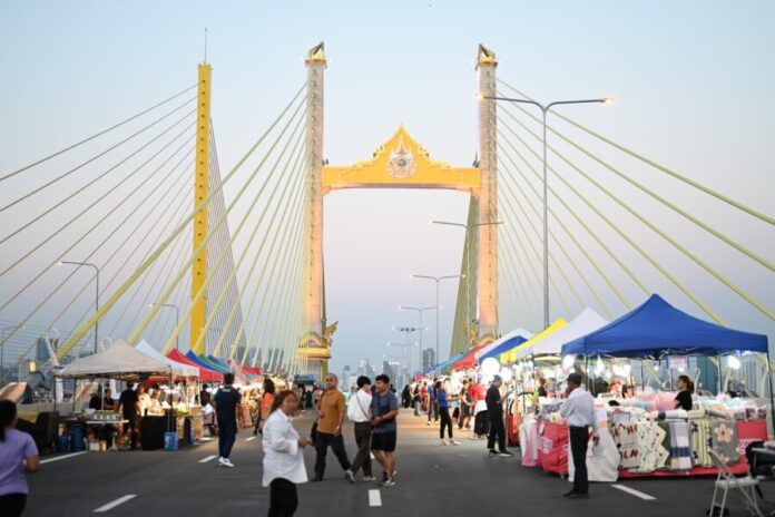 การทางพิเศษแห่งประเทศไทย (กทพ.) เปิดงาน “มหกรรมสุขเต็มสิบ” อย่างเป็นทางการ ในวันที่ 10 มกราคม 2568 ให้ประชาชนได้ร่วมสัมผัสความยิ่งใหญ่ และเฉลิมฉลองการเปิด “สะพานทศมราชัน” พร้อมมอบความสุขเป็นของขวัญให้คนไทย งานนี้จัดเต็มด้วยร้านอาหารเจ้าดัง การแสดงดนตรีจากศิลปินชื่อดัง และกิจกรรมสุดพิเศษมากมาย ท่ามกลางวิวแม่น้ำเจ้าพระยาที่สวยงามในโอกาสสำคัญก่อนเปิดใช้งานจริง มหกรรมสุขเต็มสิบ พร้อมมอบความสนุก ความอร่อย และความฟินจุใจให้ทุกคน ตั้งแต่วันนี้จนถึงวันที่ 19 มกราคม 2568 เวลา 16.00 – 22.00 น.
