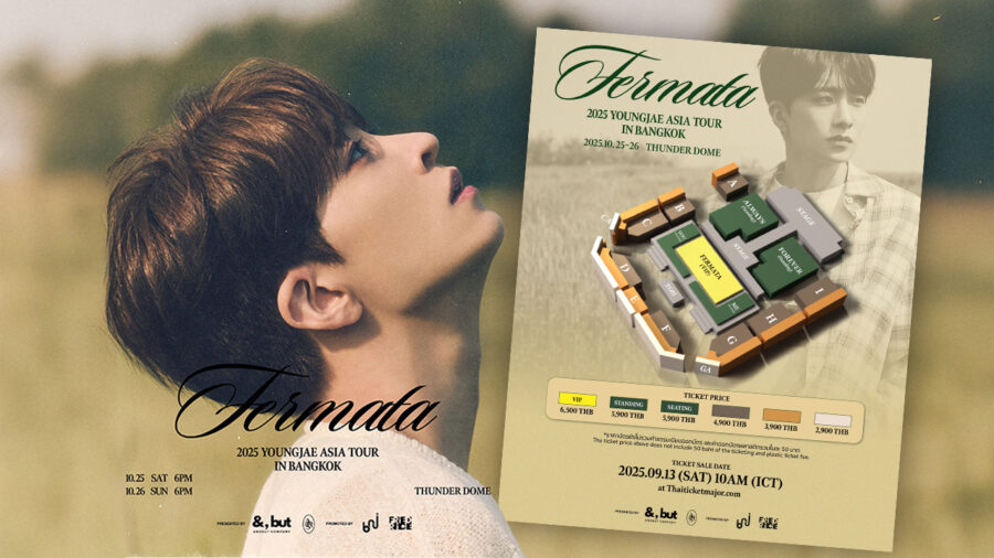 อากาเซ่ชาวไทยได้เฮกันสุดเสียงแน่นอนเพราะ “ยองแจ” กำลังจะกลับมาสร้างช่วงเวลาแห่งความทรงจำอันแสนพิเศษกับทุกคนให้หายคิดถึงในคอนเสิร์ต “2025 YOUNGJAE ASIA TOUR [Fermata] IN BANGKOK” โดยทางต้นสังกัด AndBut Company จับมือกับผู้จัด BNJ Entertainment และ FriedRice Entertainment ที่ครั้งนี้จัดเต็มถึง 2 รอบการแสดง คือ วันเสาร์ที่ 25 ตุลาคม 2025 และวันอาทิตย์ที่ 26 ตุลาคม 2025 ณ ธันเดอร์โดม เมืองทองธานี บัตรราคา 6,500 บาท / 5,900 บาท / 4,900 บาท / 3,900 บาท / 2,900 บาท พร้อมสิทธิพิเศษที่แฟน ๆ จะได้รับอีกมากมาย