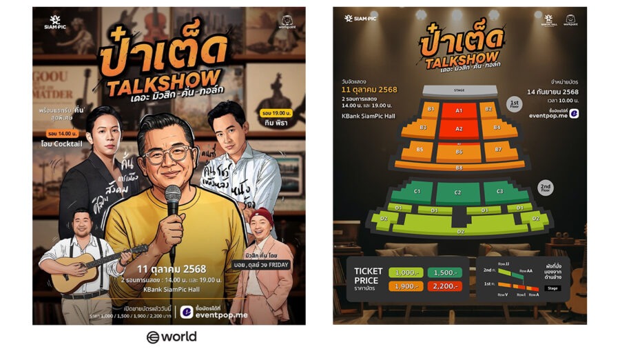 “ป๋าเต็ดทอล์กโชว์ เดอะ มิวสิก-คั่น-ทอล์ก” จัดเพียง 2 รอบเท่านั้น วันเสาร์ที่ 11 ตุลาคม 2568 เวลา 14.00 น. และ 19.00 น. ที่ KBank SiamPic Hall ชั้น 7 สยามสแควร์วัน