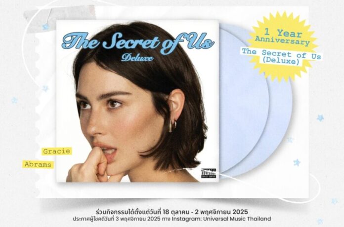 ใครที่คิดถึง Gracie Abrams เหมือนกัน เรามีกิจกรรมดี ๆ มาฝากแฟน ๆ ชาวไทยทุกคน ลุ้นรับไวนิลอัลบั้ม The Secret of Us (Deluxe) พร้อมลายเซ็นของ Gracie Abrams ! เพียงแค่ทำตามกติกาง่าย ๆ ดังนี้
