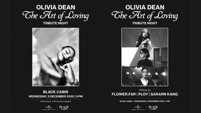 เพื่อเฉลิมฉลองความสำเร็จอย่างสวยงามของอัลบั้ม The Art Of Loving ของ Olivia Dean ทาง Universal Music Thailand จึงร่วมมือกับ BLACK CABIN BAR เสกค่ำคืนอันแสนพิเศษ สำหรับทุกคนที่หลงรักในเสียงเพลงของ Olivia Dean ในงาน UMT X BLACK CABIN : Olivia Dean The Art Of Loving Tribute Night ในวันพุธที่ 3 ธันวาคม 2568 เวลา 21.00 น. ที่ BLACK CABIN BAR งานนี้ได้ 3 ศิลปินสาวเสียงสวย Flower.far, พลอย HERS และ กั้ง Sararn Kang ที่จะมาร้องเพลงโปรดของคุณให้ได้ฟังตั้งแต่เพลงเก่าไปจนถึงเพลงในอัลบั้มใหม่ล่าสุด ในบรรยากาศอบอุ่นร่วมกับแฟนเพลงของ Olivia Dean ไปด้วยกัน รับรองว่าจะเป็นค่ำคืนพิเศษส่งท้ายปีที่ไม่มีวันลืมอย่างแน่นอน