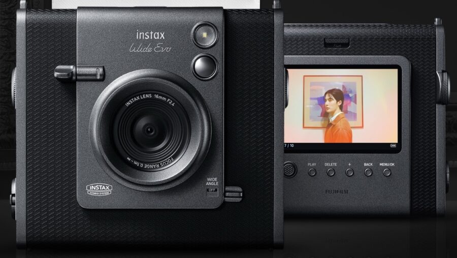 กล้องอินสแตนท์ไฮบริดระดับไฮเอนด์ instax WIDE Evo (WIDE Evo) คอนเซปต์ ‘make every shot a masterpiece’ รองรับฟิล์มขนาด WIDE ให้ภาพกว้างเป็น 2 เท่าของขนาดนามบัตร มาพร้อมจอ LCD ให้เราเลือกภาพโปรดก่อนพิมพ์ แถมยังใช้เป็นสมาร์ตโฟนปรินเตอร์ได้อีกด้วย พร้อมด้วยเอฟเฟกต์เลนส์ 10 แบบ รวมถึง “Magenta” และ “Monochrome” และเอฟเฟกต์ฟิล์มอีก 10 แบบ อย่าง “Light Leak” และ “Color Gradient” นำมาใช้ร่วมกันได้เป็น “100 รูปแบบของการถ่ายภาพ” นอกจากนี้ ยังมีฟีเจอร์ใหม่ “ควบคุมระดับของเอฟเฟกต์” เป็นครั้งแรกที่ให้เราปรับแต่งความเข้มของแสง และการไล่เฉดสีได้ถึง 100 ระดับ เพิ่มลูกเล่นภาพปรินต์โหมด “รูปแบบฟิล์ม” เพิ่มกรอบภาพสวย ๆ ได้ และยังมี “โหมดมุมกว้าง” ได้ภาพกว้างจุใจ