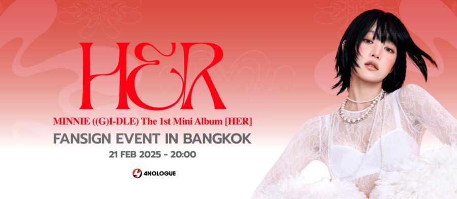 และ มินนี่ (G)I-DLE จะเดินทางมาจัดงานแฟนไซน์ครั้งแรกในไทย “MINNIE (G)I-DLE The 1st Mini Album [HER] FANSIGN EVENT IN BANGKOK” โดย CUBE ENTERTAINMENT และ COPAN GLOBAL ร่วมกับ 4NOLOGUE ดีไซน์อีเว้นต์แสนพิเศษครั้งนี้