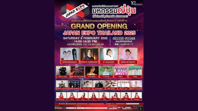 JAPAN EXPO THAILAND 2025 Celebrate 10th Anniversary จัดเต็มความบันเทิงทุกรูปแบบ โดยเฉพาะการมอบความสุขทางดนตรี โดยในปีนี้ยังคงคึกคักไปด้วยศิลปินญี่ปุ่นและไทยหลายร้อยชีวิตที่จะมารวมตัวกันในงานนี้ สับเปลี่ยนหมุนเวียนมอบความสุขสุดสนุกแบบไร้ขีดจำกัดให้กับผู้เข้าร่วมงานตลอด 3 วันเต็ม!!!